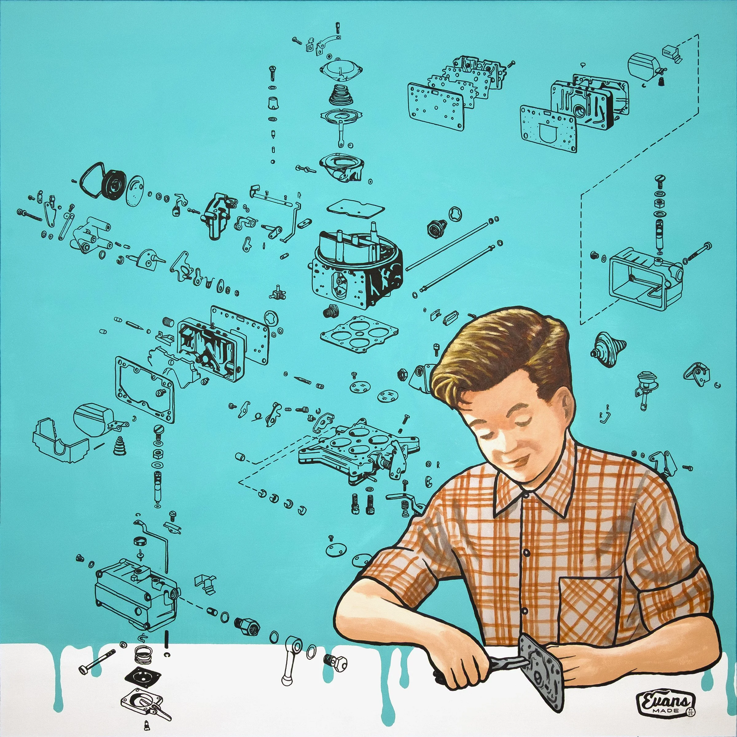 My contemporary art invites viewers to see the world as I do - where everyday objects like motors or pocket knives reveal their complex poetry. Or where the simplicity of vintage illustrations is reimagined and elevated beyond nostalgia into contemporary relevance. These subjects become vehicles for examining how we assign meaning to objects, how nostalgia shapes perception, and where beauty emerges from function.