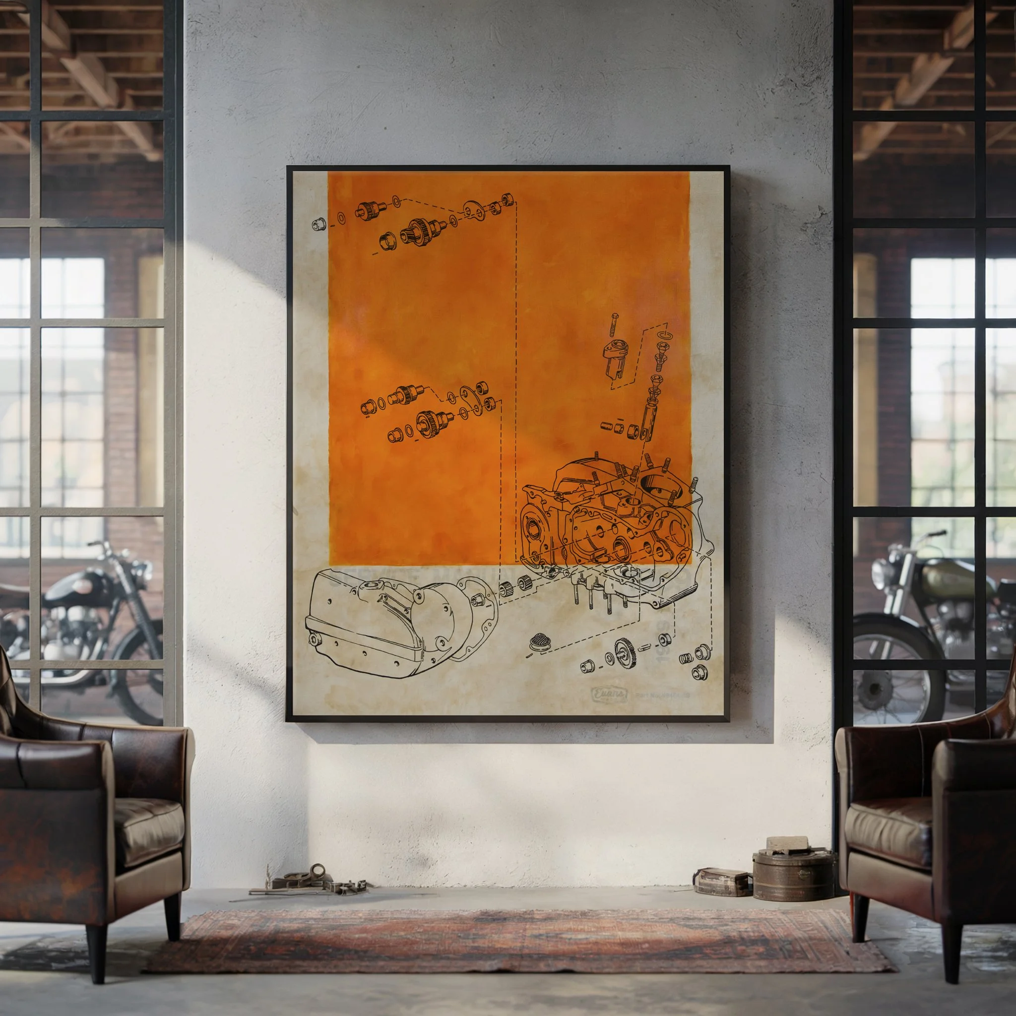 My work features exploded engine parts, vintage illustrations, fishich reels, cowboys, anything with strong design and a nostalgic charm. I'm drawn to the beauty in these things, both in the objects themselves and in how they were originally illustrated. Old advertisements, technical manuals, vintage catalogs. There's a clarity and attention to detail in that work that doesn't exist anymore. Everything now is too slick, too digital. I grew up fixing things with my hands, and I'm back to making things with my hands. That matters to me.